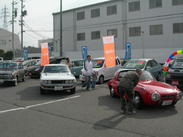 | 11月7日・8日皆様のご協力によりオープニングフェアを開催できたことを心よりお礼申し上げます。二日間で400人前後の来場を頂き旧車やホビー、新鮮野菜の直売など楽しんで頂きました。地元の旧車仲間によるノスタルジック展示会。県外からも多くの旧車仲間が訪れて盛り上げてくれました。これからも年齢層を超えた多くの人に「くるま」を楽しんで頂ける店作りにしたいと思います。「楽しむカーライフ」トップランをこれからも宜しくお願い致します。 |